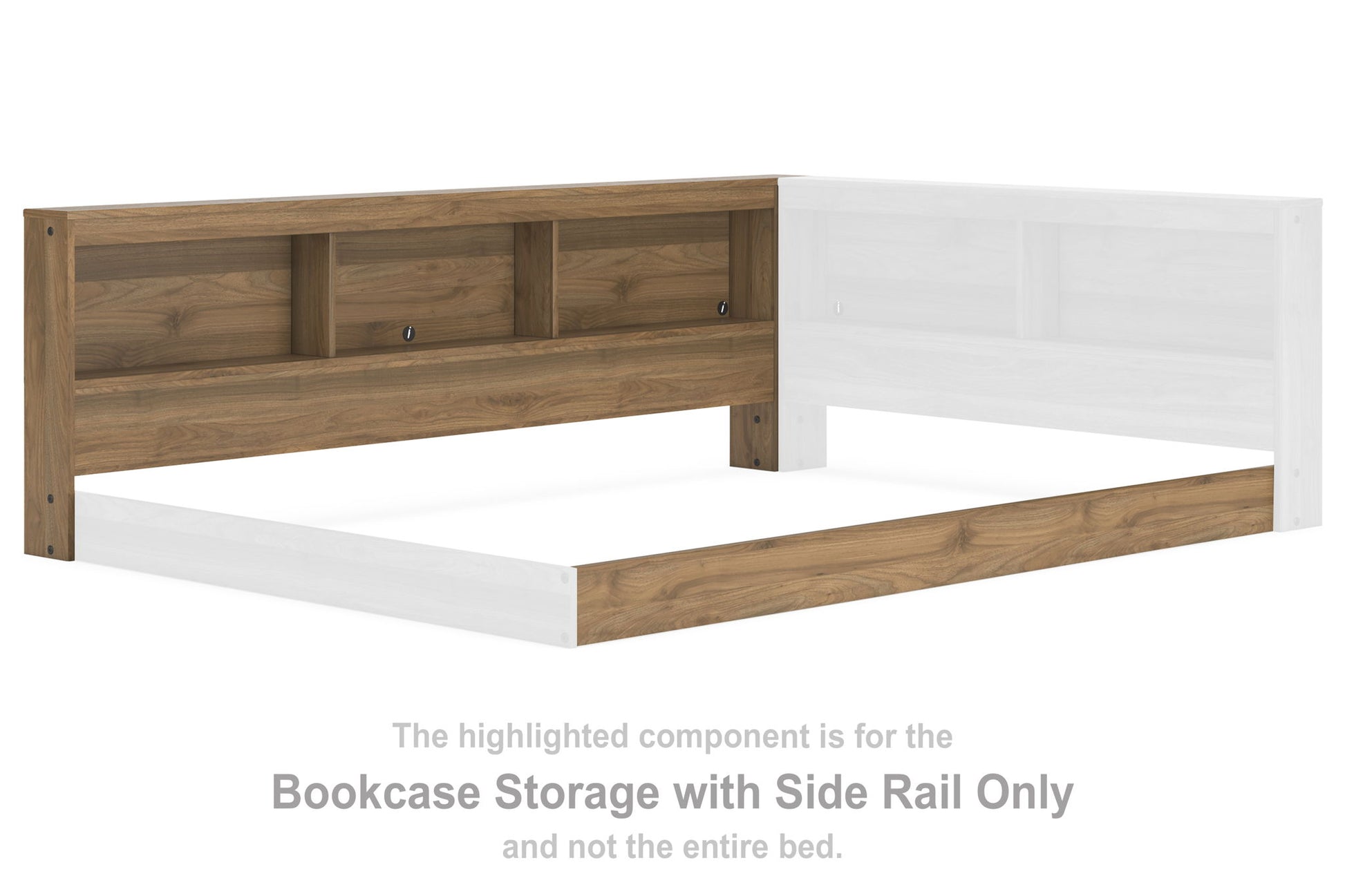 This bookcase storage with side rail is made with engineered wood (MDF/particleboard/plywood) and decorative laminate. Pairs with other items in the series to make a bed kit.