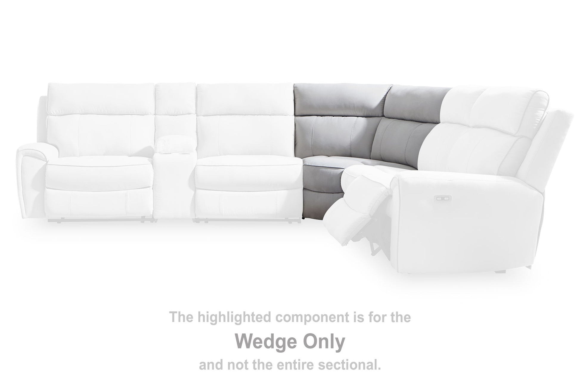This wedge is made with polyester upholstery. It pairs with other items in the series to make a modular sectional.